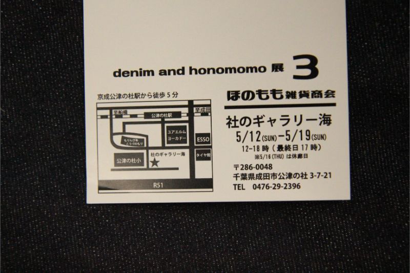 ももなり高さんと、かーきさんが主催の展示会denim and honomomo展3「ほのもも雑貨商会」が現在開催中です。