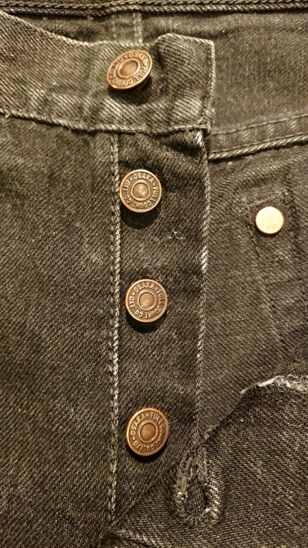 ブラックジーンズはアタリは付けても色落ちはあまりさせたくないので、これ位で穿き止めしました。